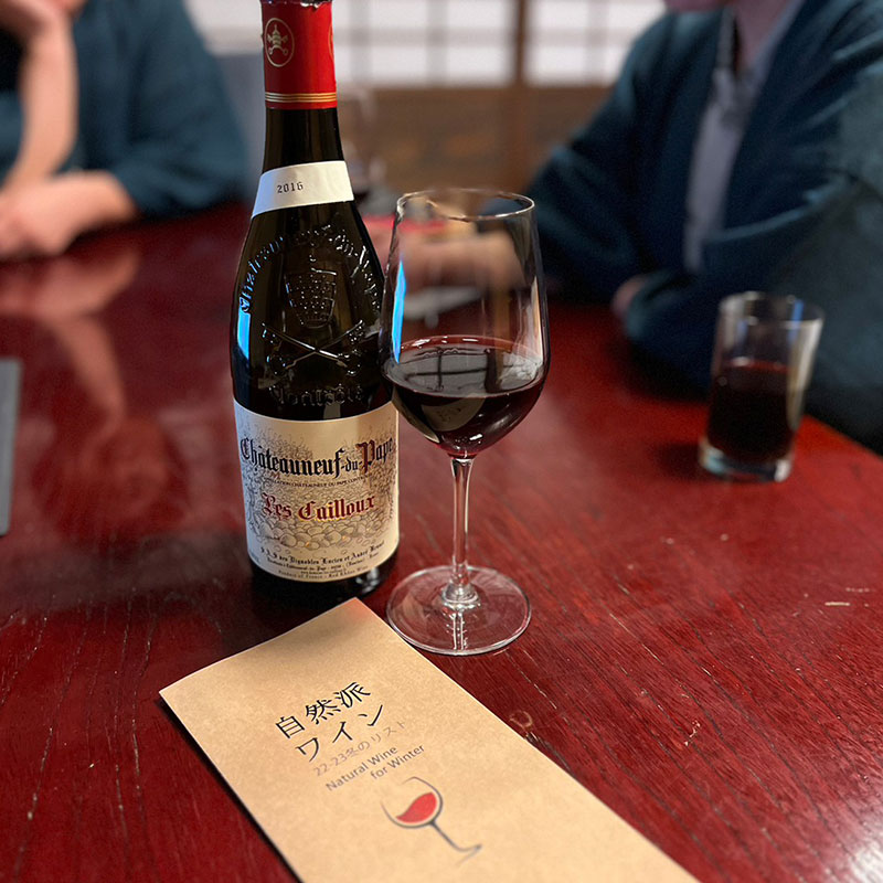 おなかいっぱいなので、おつまみはトークだけ。日本酒や焼酎、自然はワインを揃える中から今日はちょっと贅沢にこちらのワインをセレクト。