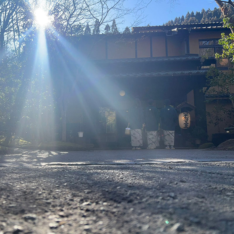 福岡から車で2時間、黒川温泉エリアの中でも、竹林を抜け少し離れた場所にある山河旅館(さんがりょかん)。